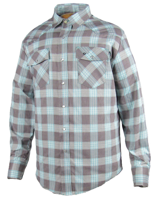 Flying R Ranchwear - Feather Plaids - Brown & Turquoise - Long Sleeve - NEW FIT