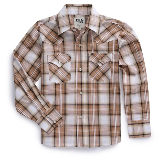 Boy's Ely Cattleman Long Sleeve Plaid Pearl Snap Shirt - Teal & Khaki