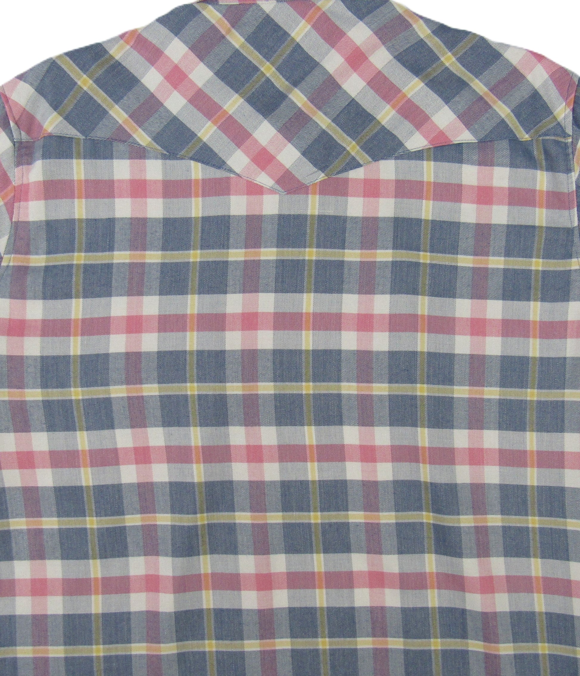 Primo plaid by Flying R Ranchwear will be the softest, most comfortable shirt in your stable and will earn its way into your rotation of favorites! Not only is this denim blue plaid soft as a cloud, the fit is perfect for wearing tails out. We also took a little out of the body and sleeves without making it a skinny shirt. If you wear a medium in our other shirts, you can wear a medium in these and it will just look better! Made in USA, 100% Cotton. Denim Blue/salmon