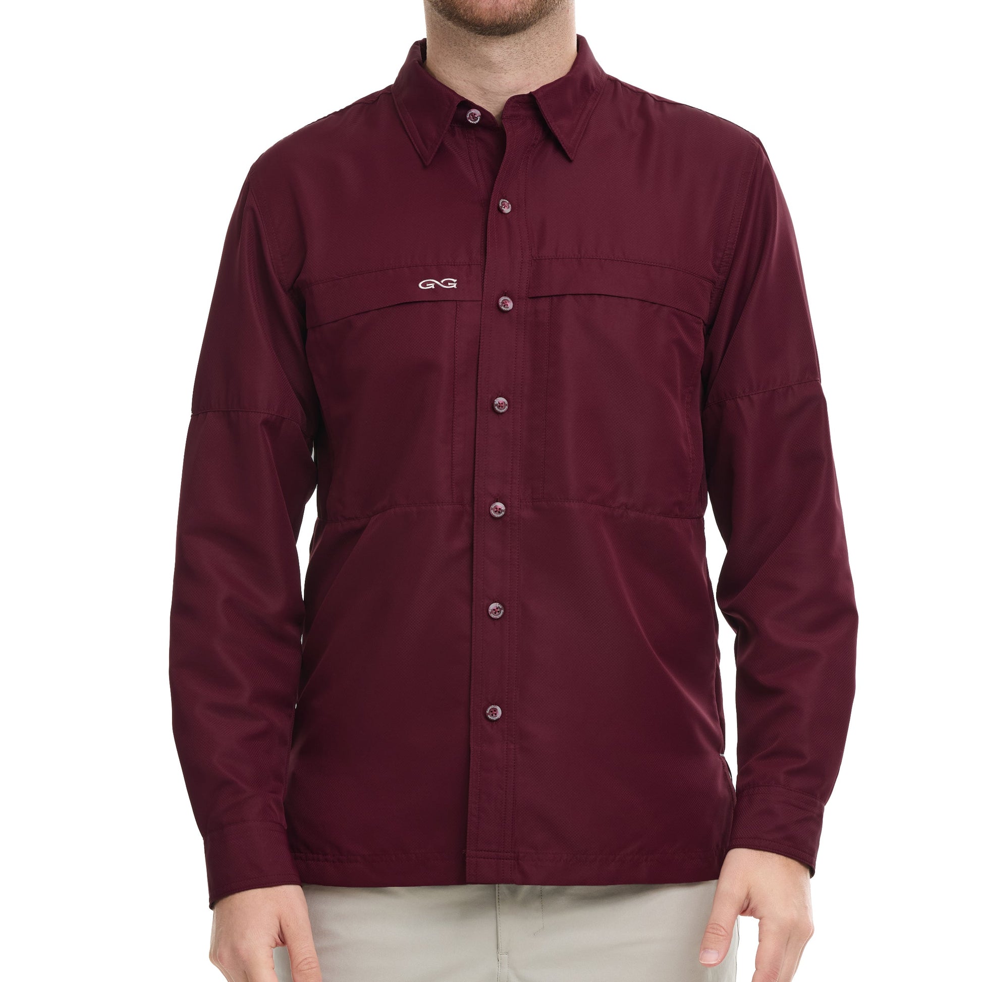 Gear up for the outdoors with the Explorer Shirt | Long Sleeve, crafted for ultimate versatility in the field. Featuring lightweight fiber fabric with UPF 50+ sun protection, it's a reliable layer for extended hunting trips, fishing excursions, or all-day hikes. Mesh-lined vents at the chest and back keep air flowing, while the quick-drying and wrinkle-resistant design ensures lasting comfort. Button-to-bungee closures at the sleeves let you adjust for changing conditions, and hidden chest pockets provide easy access to essentials. Built-in stain resistance and a lens cleaner add durability and practicality, making it an excellent choice for rugged adventures. With a lay-flat collar and tagless design, this shirt merges performance with effortless style.